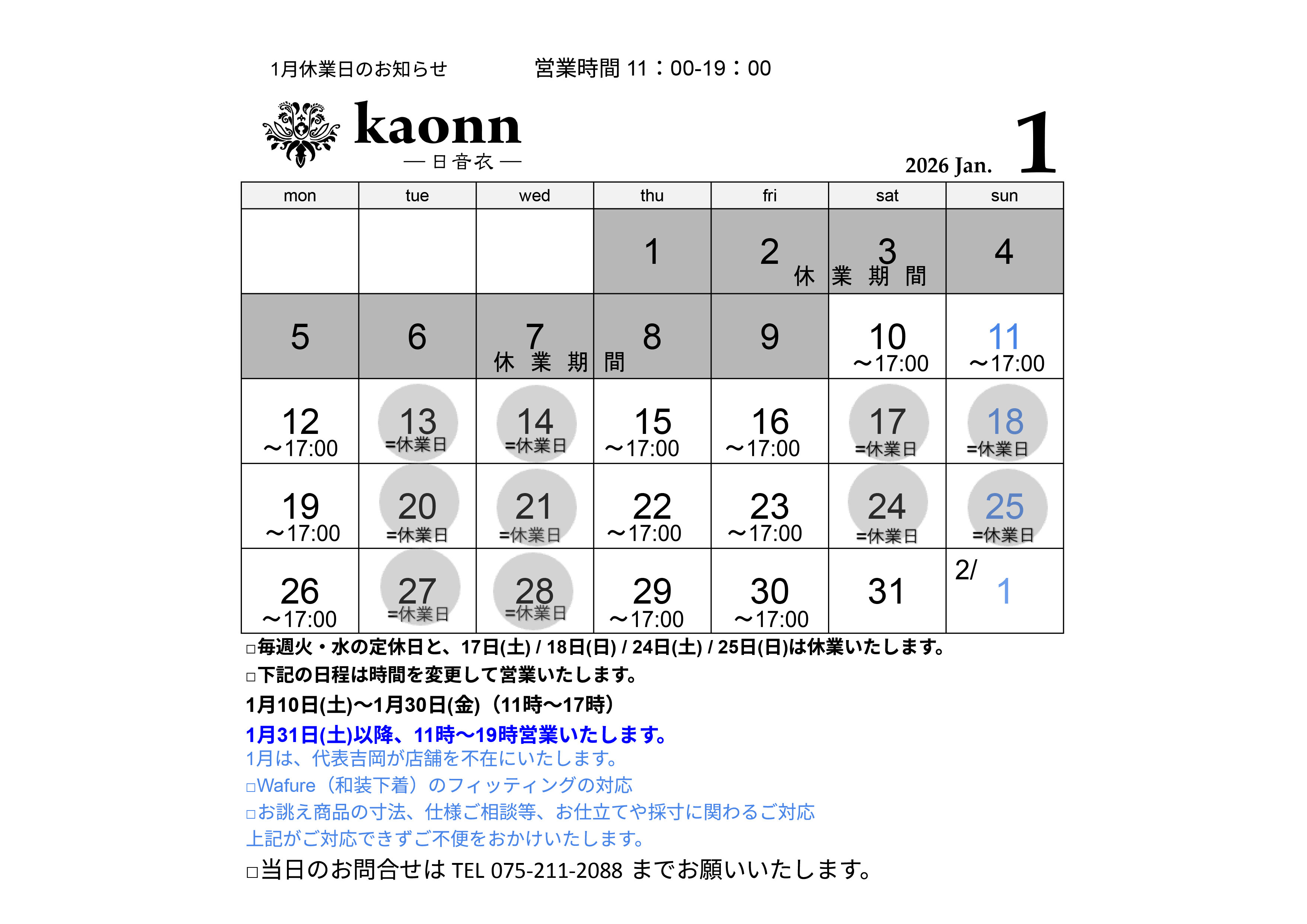 kaonn-日音衣-(店舗/ 11:00-17:00)火・水定休日